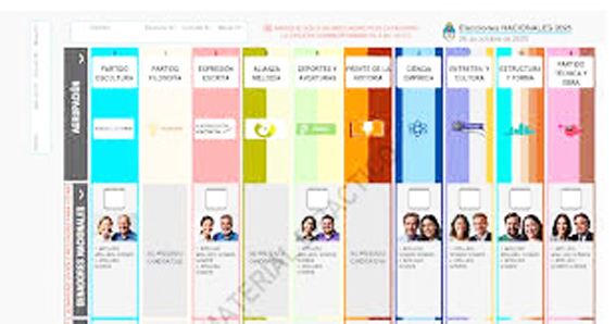 Puntualmente, en la provincia de Buenos Aires se votará para elegir diputados nacionales, mientras que en otras jurisdicciones además van a elegir senadores nacionales. En la columna de la BUP, de forma vertical, aparecen los partidos políticos; y en las filas, de manera horizontal, figuran las categorías de cargos.