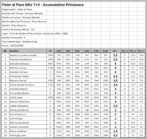 En una nueva incursión a la Ciudad Autónoma de Buenos Aires, Gustavo Navarro participó en un Certamen Blitz Acumulativo de Primavera en el club Peón al Paso, sito en Honduras 5852 de la capital. Luego de seis rondas bajo el sistema suizo con un ritmo de 7+3 (siete minutos iniciales para toda la partida con el adosamiento de tres segundos luego de cada una), el dolorense logró vencer en el torneo con 5½ puntos sobre seis posibles [5-1-0], dividiendo el punto tan sólo con Emmanuel Pradines, pero dejándolo atrás en el sistema de desempate (fuerza relativa de los rivales enfrentados por cada uno).