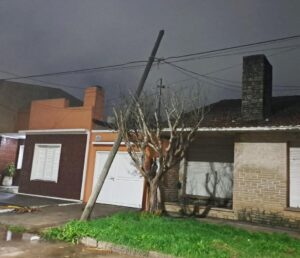 A su vez el viento provocó que un poste se cayera en calle Saenz Peña.