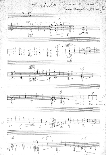 Luego de revisar la copia digitalizada enviada por el Conservatorio, se confirmó que corresponde a la edición publicada en 1958 por Ricordi Americana, del arreglo para guitarra de Estilo realizado por Abel Fleury. En comparación con el manuscrito que conserva la familia Siccardi, presenta algunas diferencias en las digitaciones y la inclusión de un efecto de slide, indicación que no figura en el original.