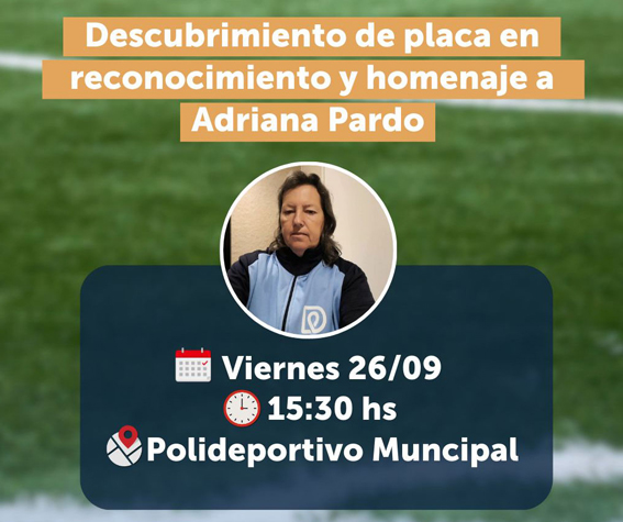 La Municipalidad de Dolores invita a la comunidad al descubrimiento de la placa en homenaje a Adriana Pardo, dolorense promotora de la inclusión y el acceso igualitario al deporte.